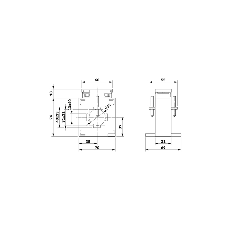 Transformateur de courant enfichable pour mesurer les courants alternatifs de 0...400 A AC , le courant de référence secondaire s'élève à 5 A , la classe de précision est 1