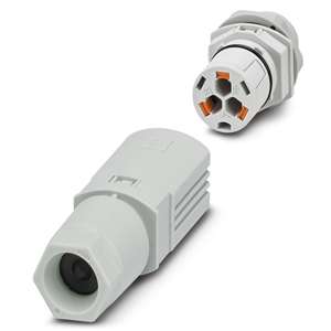 Traversée de paroi, Raccordement Push-in, nombre de pôles : 2+PE, 0,5 mm² ... 2,5 mm², 690 V, 20 A, gris clair, plage de diamètre de câble : 10 mm ... 13 mm, Raccordement Push-in