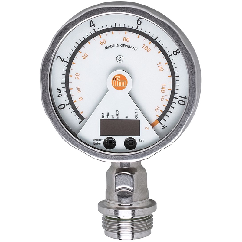 Capteur de pression électronique avec afficheur analogique; -1...10 bar; -14,5...145 psi; G 1 filetage extérieur Aseptoflex Vario; signal de commutation; signal analogique; 4...20, inversible; (possibilité de mise à l'échelle) mA; Connecteur; -25...125; (145 max. 1h) °C; IP 67; IP 69K; pression relative; vide