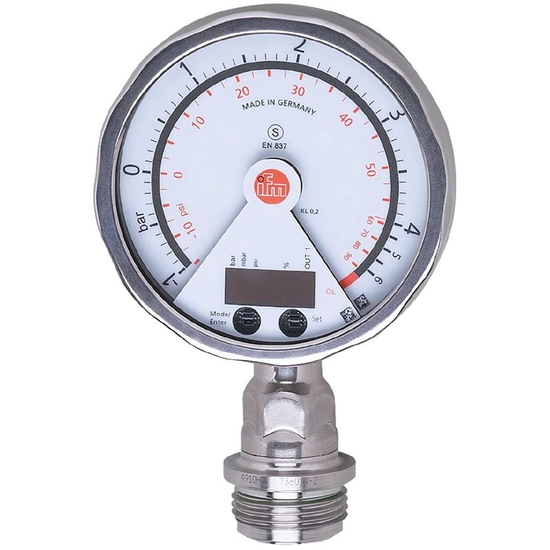 Capteur de pression électronique avec afficheur analogique; -1...4 bar; -14,5...58 psi; G 1 filetage extérieur Aseptoflex Vario; signal de commutation; signal analogique; 4...20, inversible; (possibilité de mise à l'échelle) mA; Connecteur; -25...125; (145 max. 1h) °C; IP 67; IP 69K; pression relative; vide