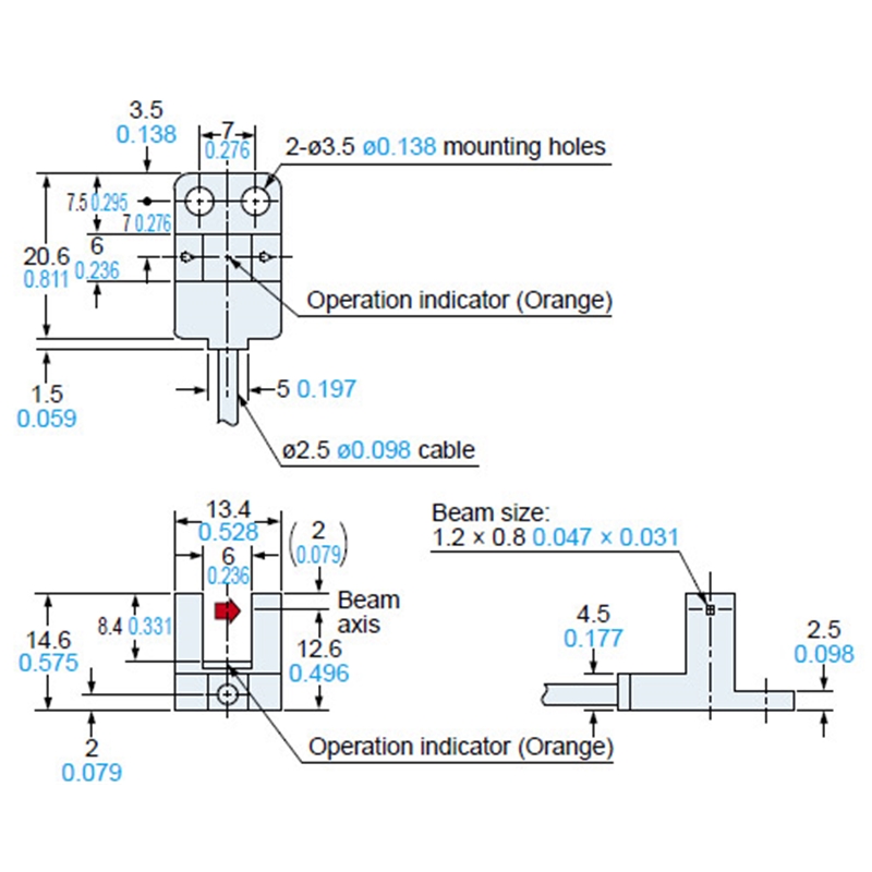Fourche optique en U, type, U-shape, 6 mm, , NPN, Led infrarouge, claire/sombre, 5-24Vdc, câble 3m