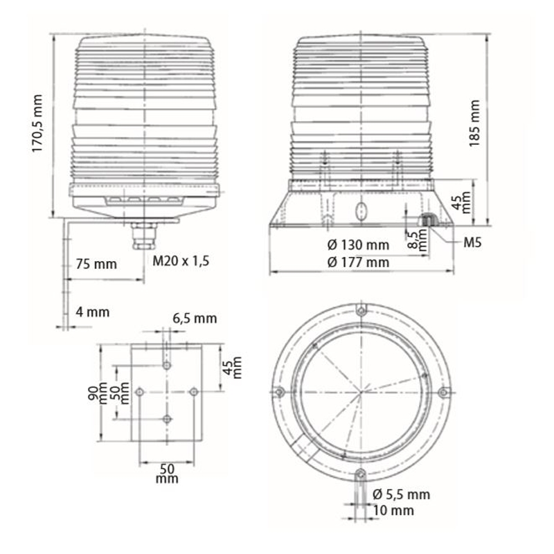 Feu flash 10J certifié SIL 24Vcc Orange IP55
