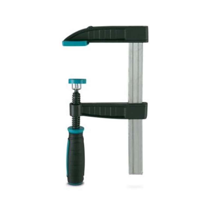 Serre-joint PPS COMPACT pour fixer le coupe-profilés PPS COMPACT, broche en acier avec filet trapézoïdal et poignée en plastique