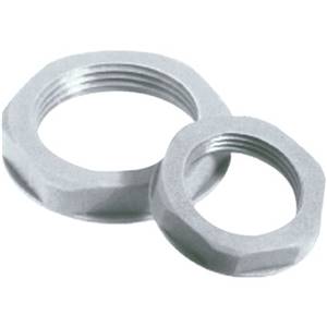 Contre-écrous en polystyrène avec filetage de raccordement PG pour le verrouillage de presse-étoupes dans des orifices d'alésage non filetés; Système de raccord vissé: Passage simple; Type de filetage: PG; Dimension: 21; Matière: Polystyrène; Couleur: Gris clair (RAL 7035); Hauteur (mm): 7.0; Taille de clé SW: 36;...