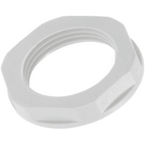 Contre-écrous renforcés par fibre de verre, pour une stabilité mécanique maximale, pour le verrouillage dans les orifices sans filetage; Système de raccord vissé: Passage simple; Type de filetage: PG; Dimension: 13,5; Matière: Polyamide; Propriétés: Renforcé par fibre de verre; Couleur: Gris clair (RAL 7035); Taille...