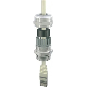 Presse-étoupe avec bague d’étanchéité à encoche pour passage de prise USB; Taille: M32 x 1,5, ø max. prise 18,5 mm, ø câble 3-8 mm; Materiau: Laiton nickelé; Type de protection: IP 69; Remarque: Avec bague d’étanchéité à...