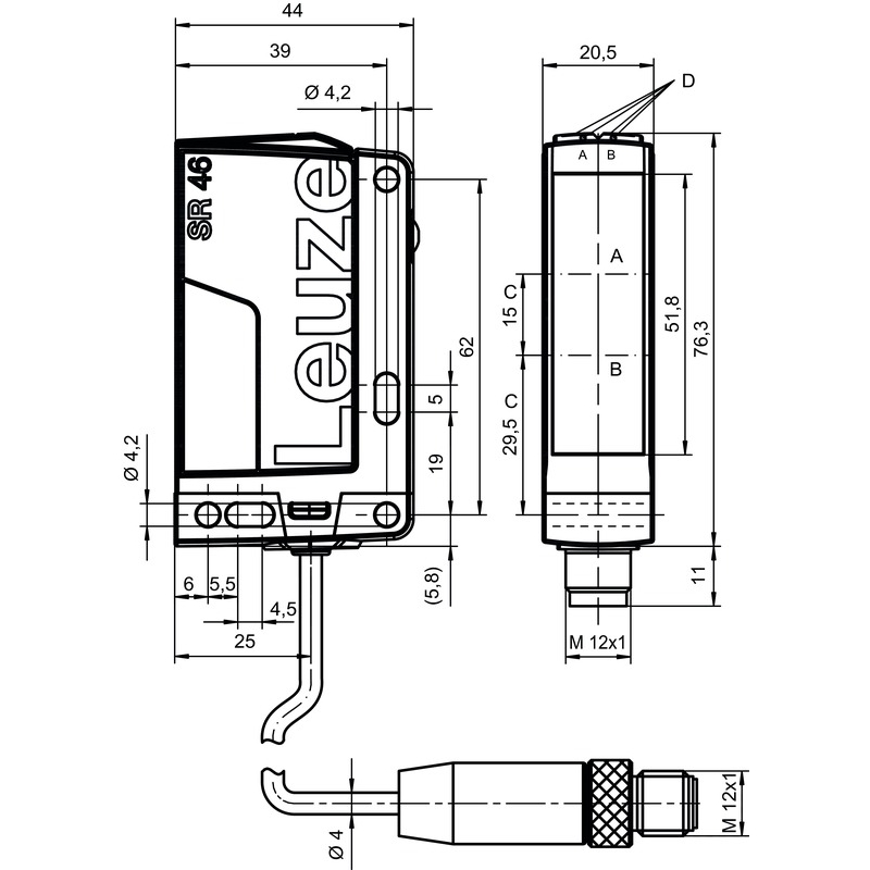• Raccordement: Connecteur mâle M12, 4 pôles, codé-A