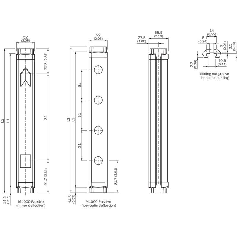 Barrière immatérielle de sécurité multifaisceaux; Pièce du système: Unité déflectrice; Nombre de faisceaux: 4; Entraxe des faisceaux: 300 mm; Série: M4000 Standard A/P