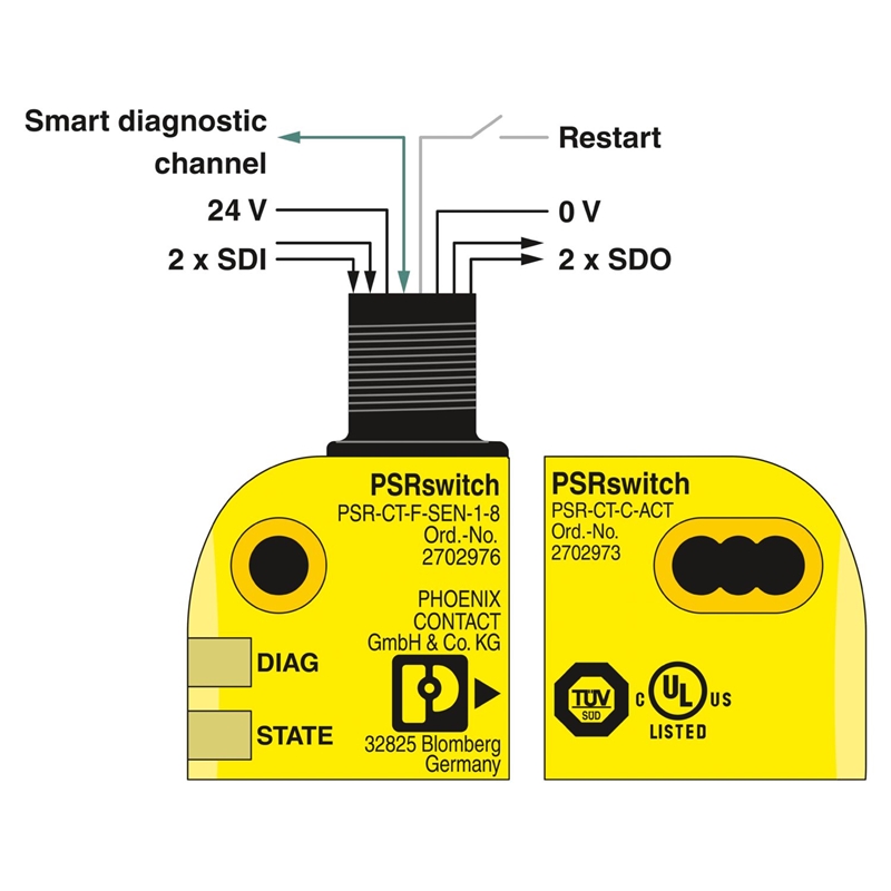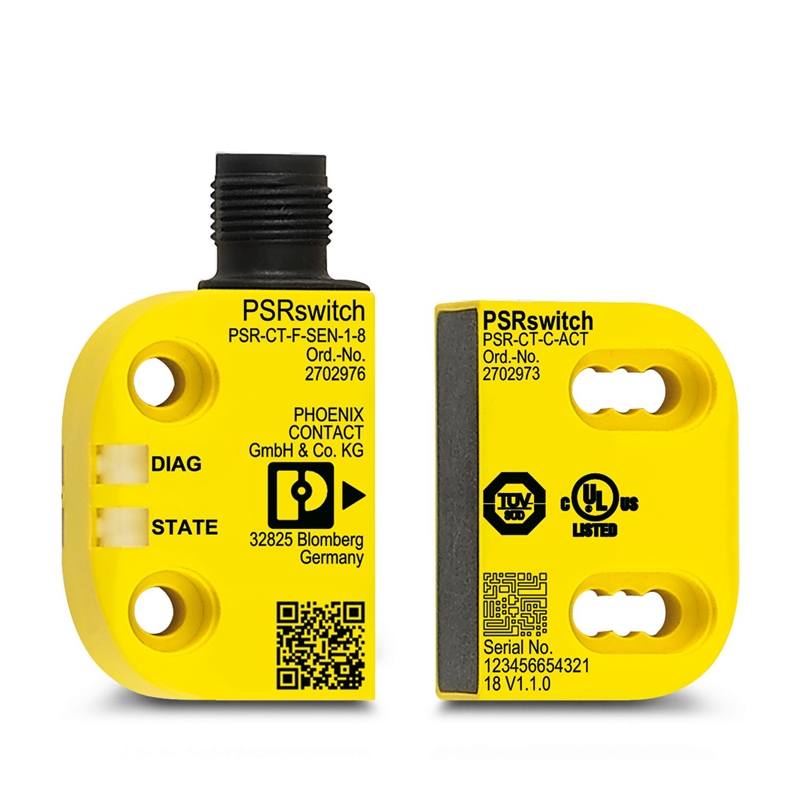 Le commutateur de sécurité PSR-CT combine un capteur PSR-CT-...-SEN-1-8 avec divers détrompages et un actionneur codé PSR-CT-C-ACT. Il garantit une protection contre les manipulations et une sécurité maximales selon la norme EN ISO 14119. Type de détrompages pour le commutateur de sécurité PSR-CT : Fixcode : Pour que le capteur le détecte, l'actionneur doit lui être affecté par une procédure d'instruction. Cette procédure ne peut être effectuée qu'une fois. Capteur et actionneur sont alors affectés fixement l'un à l'autre par leur détrompage. Les commutateurs de sécurité avec évaluation Fixcode présentent un niveau de détrompage élevé. Unicode : Pour que le capteur le détecte, l'actionneur doit lui être affecté par une procédure d'instruction. La procédure d'instruction peut être infiniment répétée. Le capteur détecte le dernier actionneur qui lui a été affecté. Les commutateurs de sécurité avec évaluation Unicode présentent un niveau de détrompage élevé. Multicode : Le capteur détecte tous les actionneurs du type autorisé. Il n'est pas possible d'affecter un code d'actionneur particulier. Les commutateurs de sécurité avec évaluation Multicode présentent un niveau de détrompage faible.