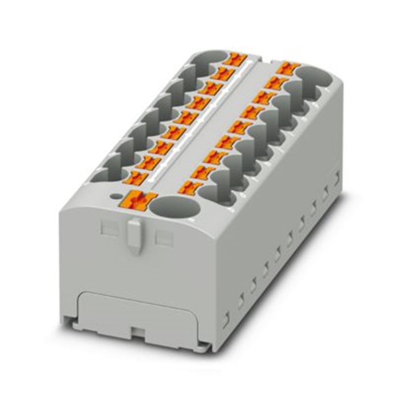 Bloc distributeur, Module adhésif, raccordement Push-in, 450 V, 32 A, nombre de connexions: 19, section : 0,2 mm² - 6 mm², AWG: 24 - 10, largeur: 46,3 mm, hauteur: 21,7 mm, coloris: gris
