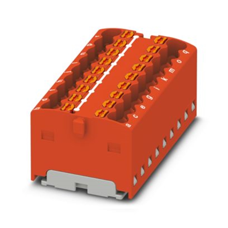 Bloc distributeur, Push-in, nombre de connexions : 18, sections : 0,14 mm² - 1,5 mm², largeur : 39,9 mm, hauteur : 17,6 mm, couleur : rouge, type de montage : adhésif