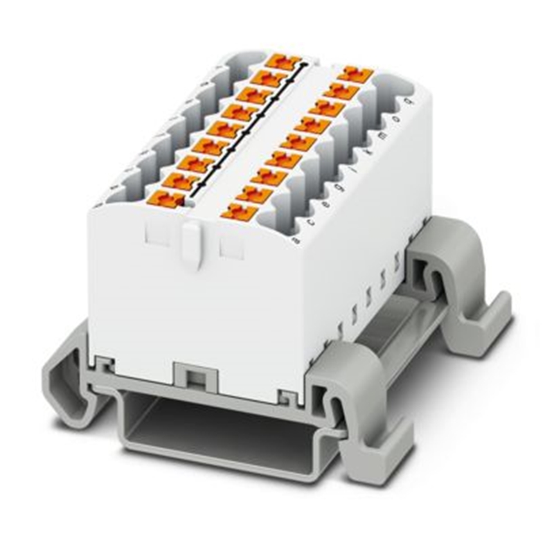 Bloc distributeur, pour montage longitudinal, Push-in, nb. de connexions : 18, sections : 0,14 mm² - 4 mm², largeur : 46,5 mm, hauteur : 28,7 mm, blanc, NS 35/7,5, NS 35/15