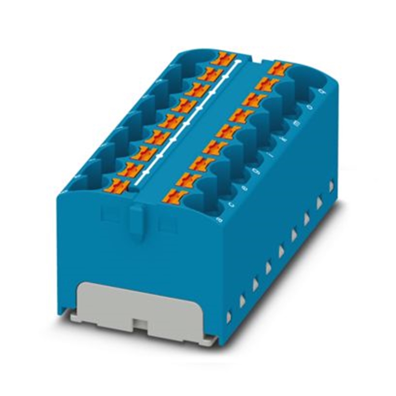 Bloc distributeur, 630 V,32 A, Push-in, nombre de connexions: 18, 0,2 mm² - 6 mm², largeur: 55,35 mm, hauteur: 21,7 mm, couleur: bleu, montage: encliquetage sur l'adaptateur de profilé, Plaque d'adaptation