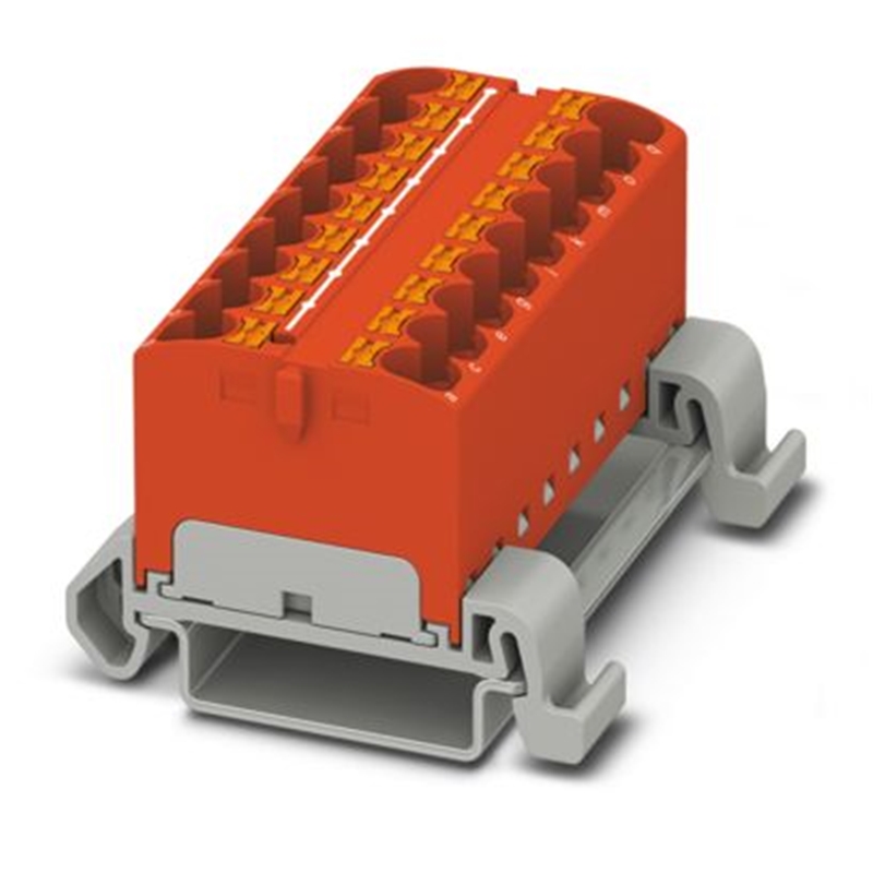 Bloc distributeur, pour montage longitudinal, 630 V,32 A, Push-in, nombre de connexions: 18, 0,2 mm² - 6 mm², AWG: 24 - 10, largeur: 18,5 mm, hauteur: 29,2 mm, couleur: rouge, type de montage: NS 35/7,5, NS 35/15