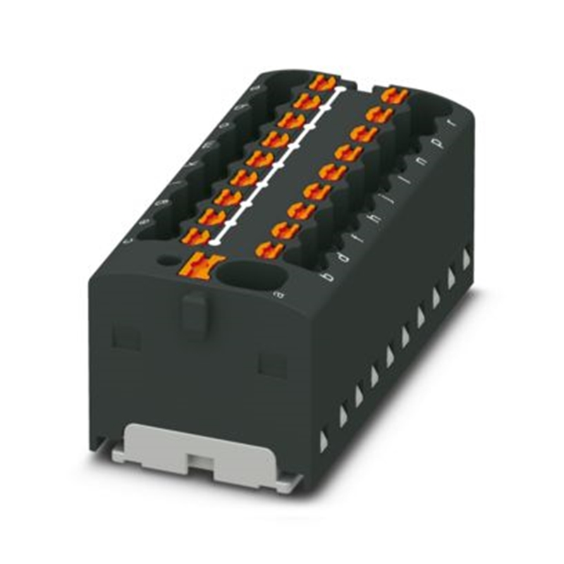 Bloc distributeur, 450 V, 17,5 A, Push-in, nombre de connexions: 19, section : 0,14 mm² - 2,5 mm², AWG: 26 - 14, largeur: 43,9 mm, hauteur: 18,7 mm, couleur: noir, type de montage: adhésif