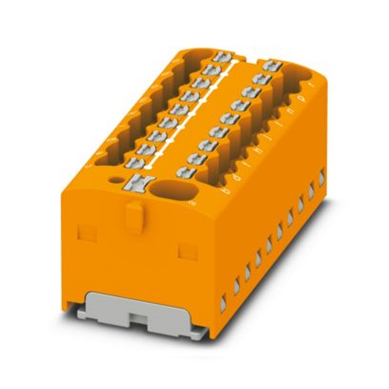 Bloc distributeur, 450 V, 17,5 A, Push-in, nombre de connexions: 19, section : 0,14 mm² - 2,5 mm², AWG: 26 - 14, largeur: 43,9 mm, hauteur: 18,7 mm, coloris: orange, type de montage: adhésif