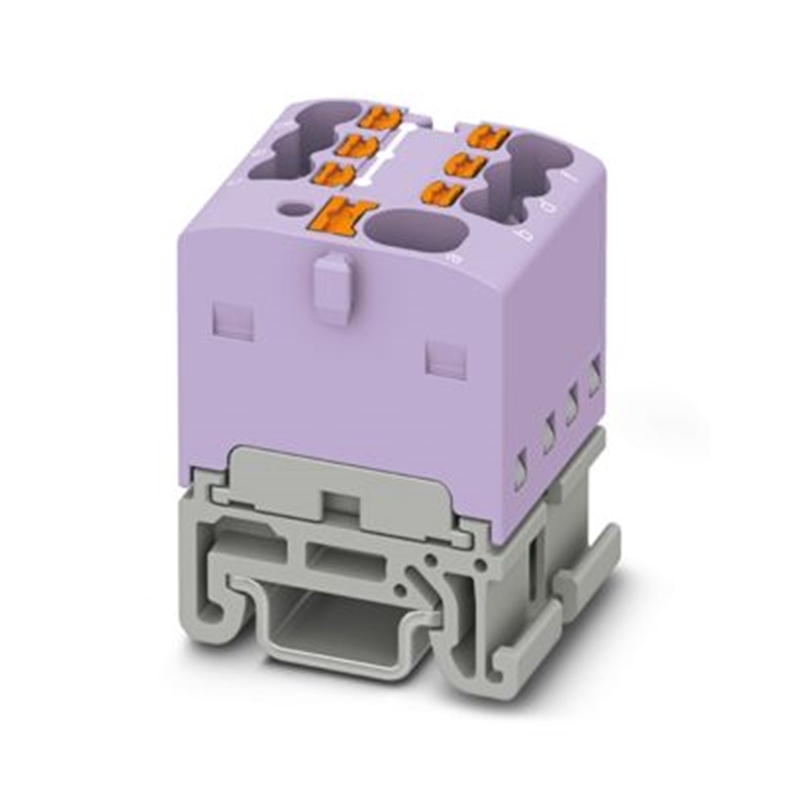 Bloc distributeur, 500 V, 17,5 A, Push-in, nombre de connexions: 7, section : 0,14 mm² - 2,5 mm², AWG: 26 - 14, largeur: 19 mm, couleur: violet, type de montage: NS 15