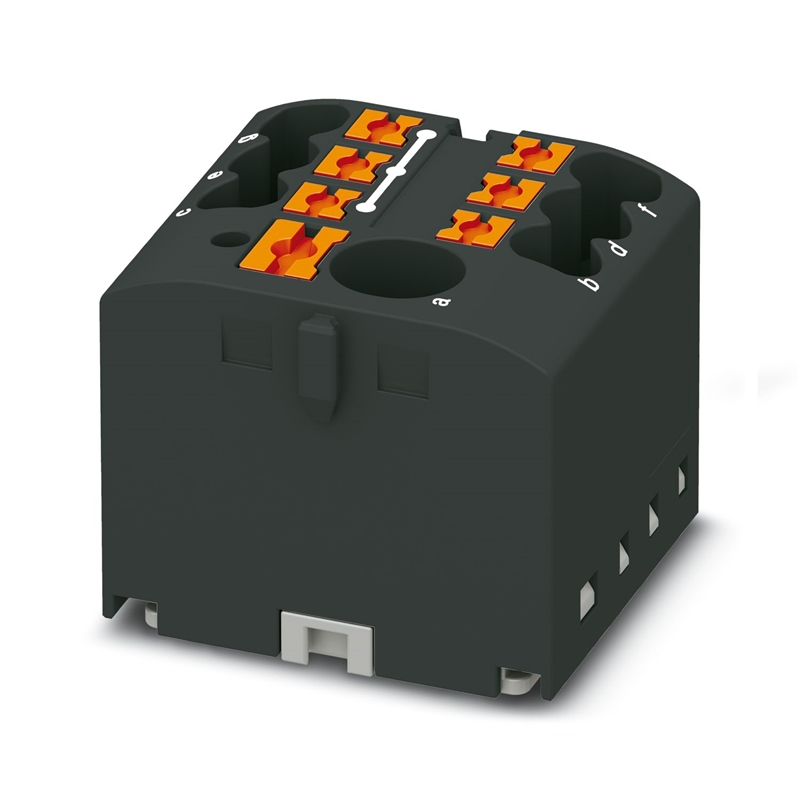 Bloc distributeur, Module de base avec alimentation, tension nominale: 450 V, intensité nominale: 24 A, nombre de connexions: 7, type de raccordement: Raccordement Push-in, Dérivation, section : 0,14 mm² - 4 mm², Raccordement Push-in, Raccordement collectif, Section de référence: 6 mm², section : 0,5 mm² - 10 mm², type de montage: collage, coloris: noir