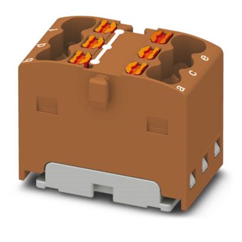 Bloc distributeur, Push-in, nb. de connexions : 6, sections : 0,14 mm² - 1,5 mm², largeur : 12,6 mm, hauteur : 17,6 mm, couleur : marron, type de montage : montage direct avec bride