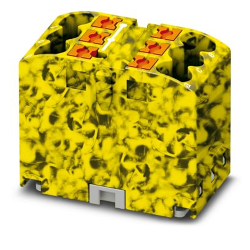 Bloc distributeur, Push-in, nb. de connexions : 6, sections : 0,14 mm² - 4 mm², largeur : 15,6 mm, hauteur : 21,2 mm, couleur : noir/jaune, type de montage : adhésif
