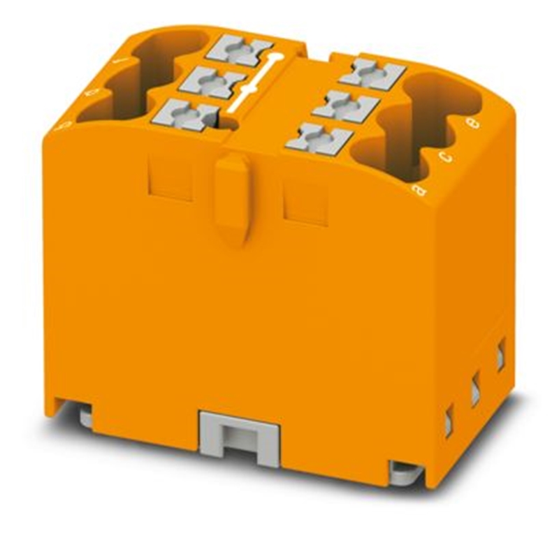 Bloc distributeur, Push-in, nombre de connexions : 6, sections : 0,14 mm² - 4 mm², largeur : 15,6 mm, hauteur : 21,2 mm, coloris : orange, type de montage : adhésif
