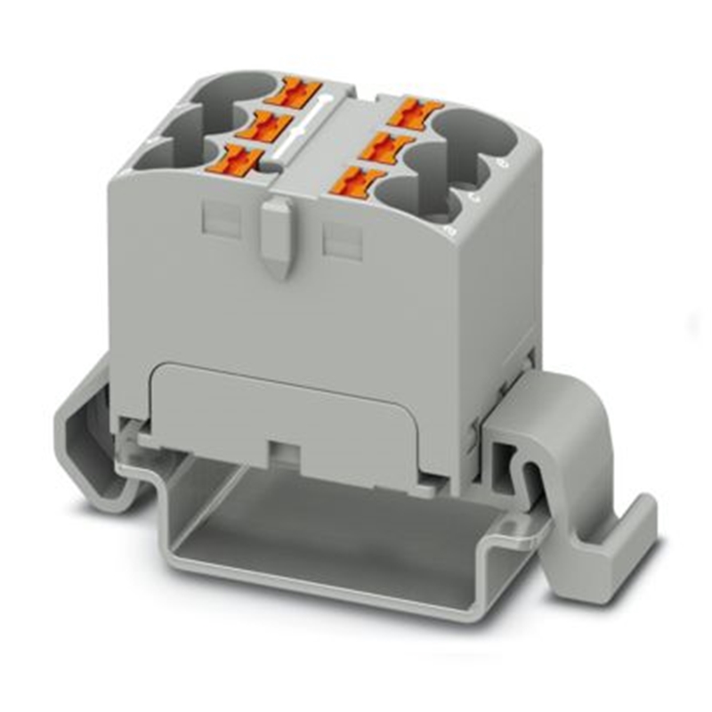 Bloc distributeur, pour montage longitudinal, 630 V,32 A, Push-in, nb. de connexions: 6, 0,2 mm² - 6 mm², AWG: 24 - 10, largeur: 18,5 mm, hauteur: 29,2 mm, couleur: gris, type de montage: NS 35/7,5, NS 35/15