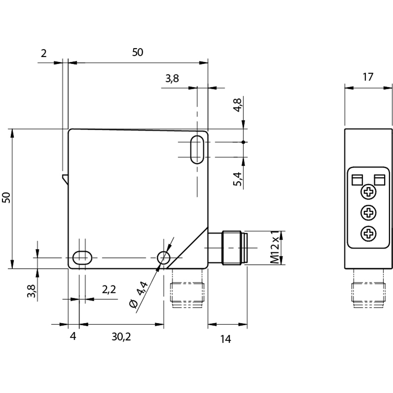 • Dimensions: 50 mm x 50 mm x 17 mm