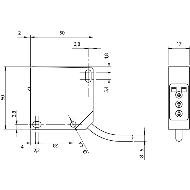 • Dimensions: 50 mm x 50 mm x 17 mm