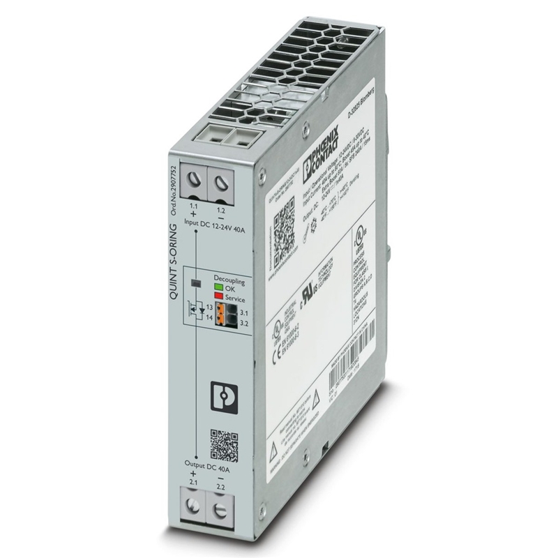 Module de redondance actif pour une disponibilité et une sûreté de fonctionnement maximales de l'installation. QUINT S-ORING permet le montage séparé d'un système redontant. En combinaison avec la nouvelle alimentation QUINT POWER, le système redondant fait l'objet d'une surveillance globale.