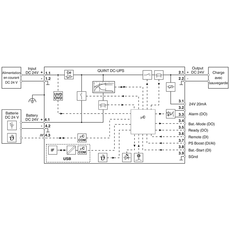 Alimentation secourue ASI QUINT avec IQ Technology, interface de communication USB (Modbus/RTU), montage sur rail, Entrée : 24 V DC, Sortie : 24 V DC / 10 A, Courant de charge : 3 A