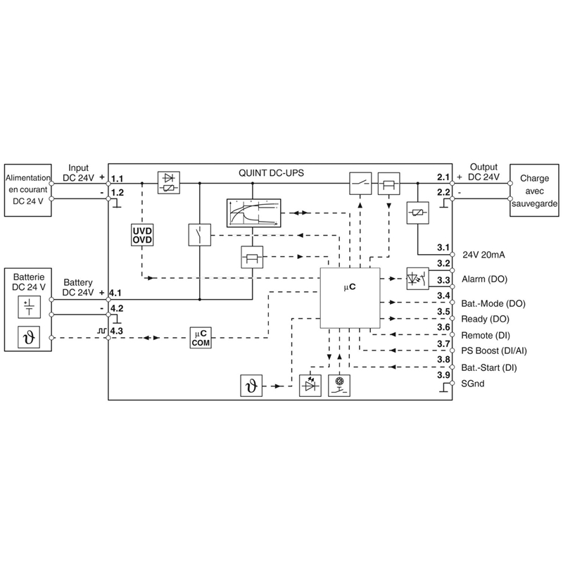 Alimentation secourue, QUINT UPS, IQ Technology, Montage sur rail DIN, Raccordement vissé, entrée: 24 V DC, sortie : 24 V DC / 20 A, courant de charge: 5 A
