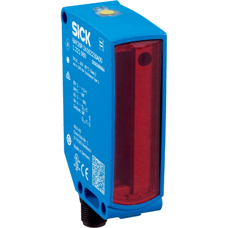 Les barrières réflex de la gamme de produits RAY26 Reflex Array assurent une détection fiable d'objets plats et une mise en service rapide. Combinées à un réflecteur, les barrières réflex détectent même des objets petits, plats, transparents ou inégaux à partir d'une taille de 3 mm. Pour cela, à l’intérieur d’une bande lumineuse homogène d’une hauteur de 55 mm, les capteurs détectent le bord avant de l’objet concerné. Cela permet de détecter de manière fiable même des objets perforés sans commutation multiple.