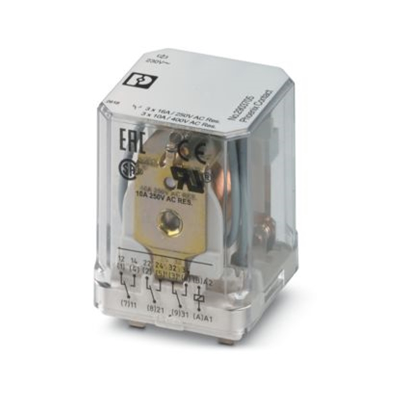 Relais de puissance enfichables avec contacts de puissance, 3 contacts inverseurs, tension de bobine : 230 V AC