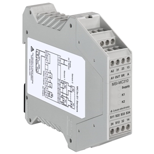 Relais de sécurité; Fonctions de sécurité des entraînements: Arrêt, Limitation sûre de vitesse (SLS), Surveillance sûre de la vitesse (SSM); Limite de vitesse réglable: 0,5 Hz ... 99 Hz; Raccordement: Borniers à vis; Tension d'alimentation Uv: 24 V (19,2 V ... 30 V); Dimensions (l x H x P): 22,5...
