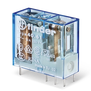 Relais circuit imprimé 1RT 6A 5V DC version sensible, matériau des contacts AgNI, faible épaisseur de 5mm, embrochable sur support série 93