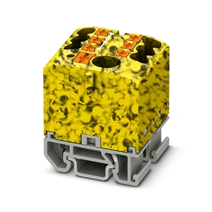 Bloc distributeur, Module de base avec alimentation, Push-in, nombre de connexions : 7, sections : 0,14 mm² - 4 mm², largeur : 25,2 mm, hauteur : 21,2 mm, coloris : jaune, type de montage : adhésif