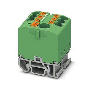 Bloc distributeur, Module de base avec alimentation, Push-in, nombre de connexions : 7, sections : 0,14 mm² - 4 mm², largeur : 25,2 mm, hauteur : 21,2 mm, couleur : vert, type de montage : adhésif