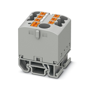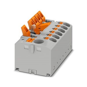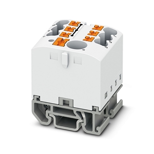 Bloc distributeur, Bloc avec orientation horizontale et alimentation intégrée, tension nominale: 690 V, intensité nominale: 24 A, nombre de connexions: 7, type de raccordement: Raccordement Push-in, Dérivation, section : 0,14 mm² - 4 mm², Raccordement Push-in,...