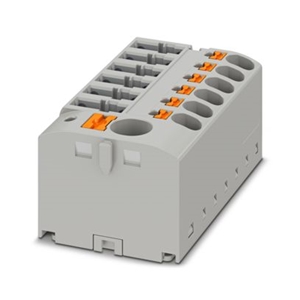 Bloc distributeur, Push-in, nb. de connexions : 6, sections : 0,14 mm² - 1,5 mm², largeur : 12,6 mm, hauteur : 17,6 mm, couleur : gris, type de montage : montage direct avec bride
