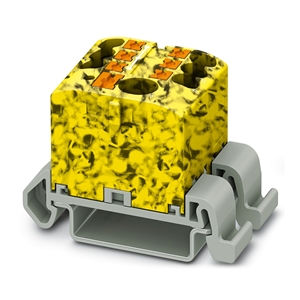 Bloc distributeur, Push-in, nb. de connexions : 6, sections : 0,14 mm² - 1,5 mm², largeur : 12,6 mm, hauteur : 17,6 mm, couleur : noir/jaune, type de montage : montage direct avec bride