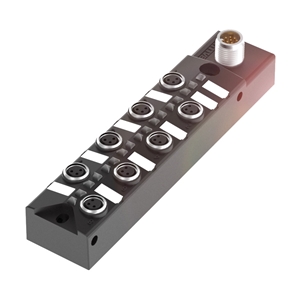 Répartiteur passif; Raccordement capteurs: 8x M8x1-Connecteur femelle, 3-pôles; Affichage fonction de commande: Pas de LED; Raccordement automate (COM 1): M12x1-Connecteur mâle, 12-pôles; Tension d'emploi Ub: 10...30 VDC/10...30 VAC; Courant de sortie max.: 1.5 A;...