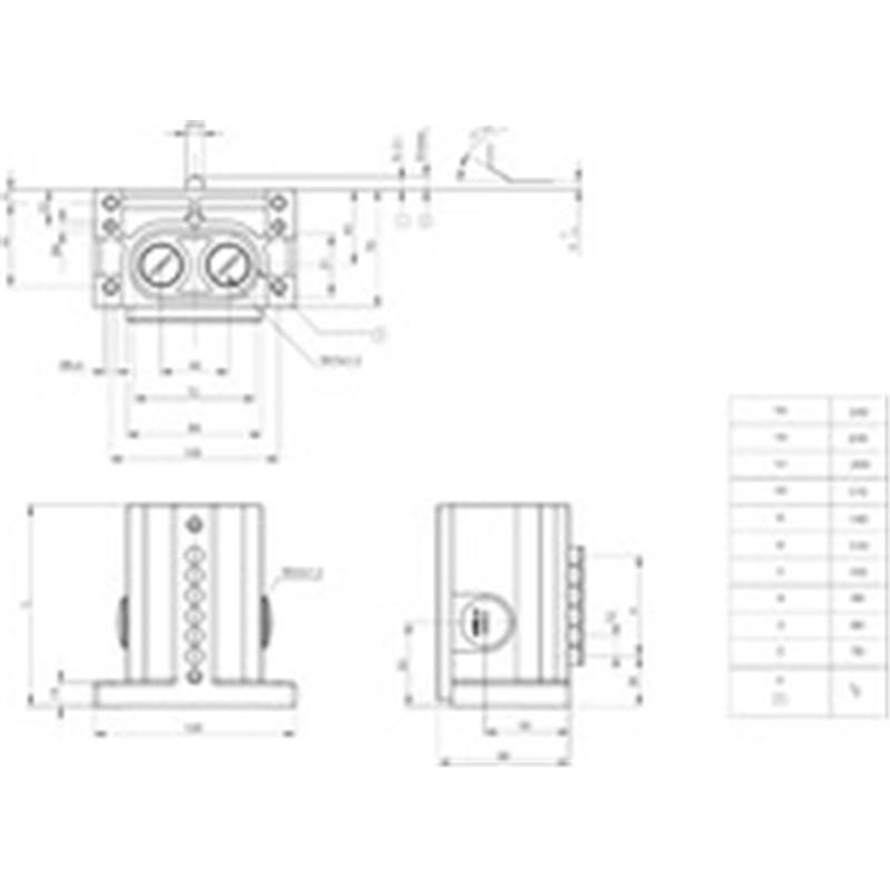 Boîtier multipistes; Modèle: Vertical selon DIN 43697; Élément d'actionnement: Poussoir en toit; Pas entre les poussoirs: 12 mm; Principe actif: Mécanique; Force d’actionnement: min. 20 N; Nombre d’éléments de commutation: 5; Contact: 1 O + 1 F (ES 502 E); Principe de commutation: Élément de contact à action brusque; Type de raccordement: 4x M25 x 1,5; Section de raccordement: 0.34 ... 1.5 mm²; Matériau: - Contact: Alliage argent, doré par soufflage- Boîtier: Aluminium moulé sous pression anodisé; Indice de protection: IP67; Température ambiante: -5 ... 80 °C; Série: RGBF