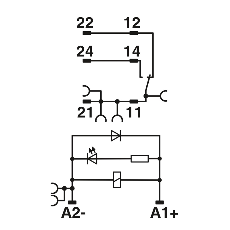 Module à relais prééquipé avec raccordement Push-in, comprenant: embase de relais, relais à contacts de puissance, module d'affichage/antiparasite enfichable et étrier de fixation. Type de contact: 1 contact inverseur. Tension d'entrée: 24 V DC
