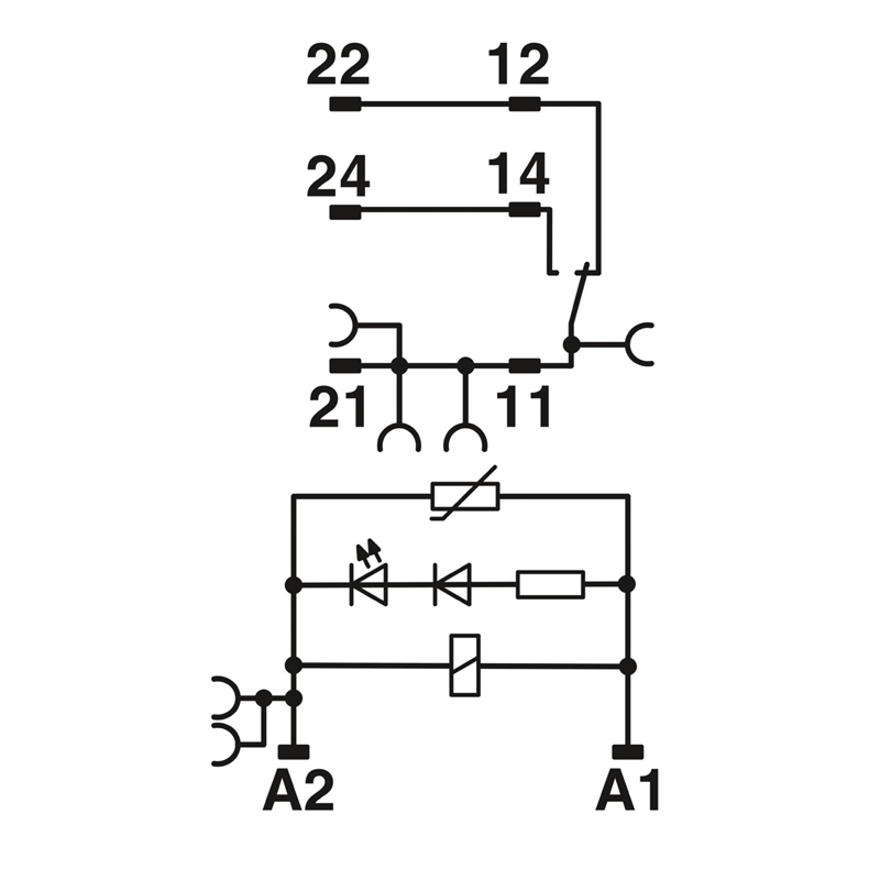 Module à relais prééquipé avec raccordement push-In, comprenant: embase de relais, étrier de fixation du relais, module antiparasite enfichable et relais à contacts de puissance avec touche de contrôle et LED de statut intégrée. Type de contact: 1 contact inverseur. Tension d'entrée: 230 V AC