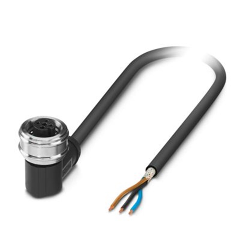 Câble pour capteurs/actionneurs, 3-pôles, PUR exempt d'halogène, gris-noir RAL 7021, blindé (Advanced Shielding Technology), extrémité libre, sur Connecteur femelle coudé M12, détrompage: A Push-Pull, longueur de câble: 10 m