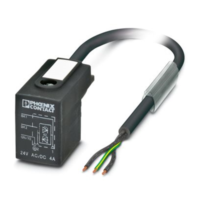 Câble pour capteurs/actionneurs, 3-pôles, PVC, noir RAL 9005, extrémité libre, sur Connecteur de vanne BI (11 mm), avec 1 LED, Câblage: Diode zéner, longueur de câble: 1,5 m