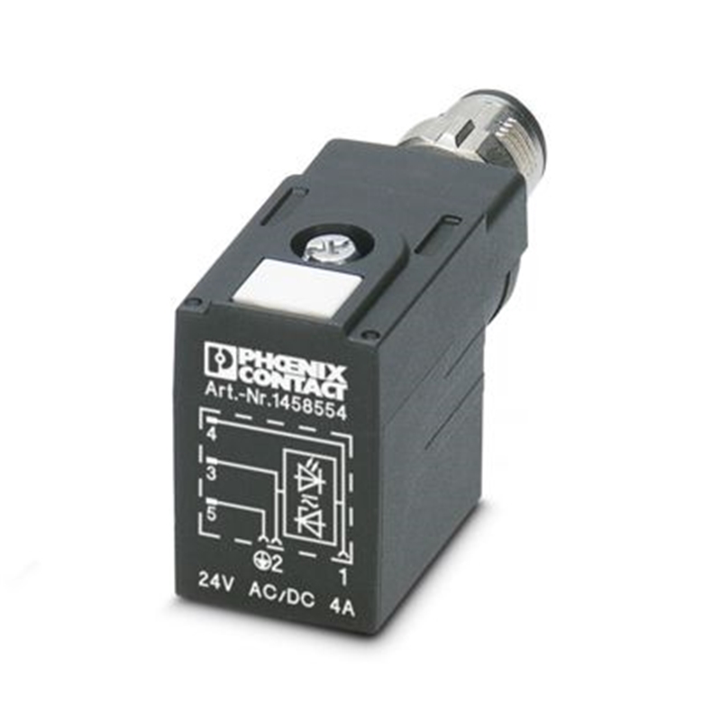 Connecteur pour électrovannes, 3-pôles, connecteur mâle coudé M12, détrompage: A, avec 1 LED, câblé avec Diode zéner, sur Connecteur de vanne B (10 mm), avec 1 LED, câblé avec Diode zéner