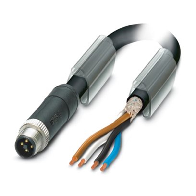 Câble d'alimentation, 4-pôles, PUR exempt d'halogène, noir RAL 9005, blindé (Advanced Shielding Technology), connecteur mâle droit M12, codage: T, sur extrémité libre, longueur de câble: 1,5 m, pour courant continu jusqu'à 12 A/63 V