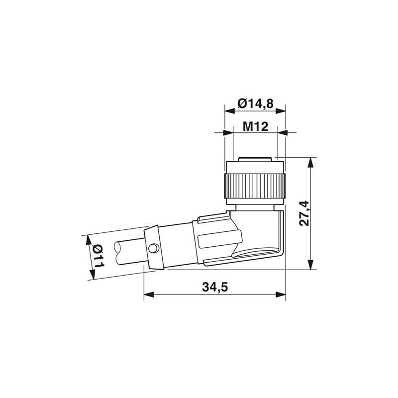 Câble pour capteurs/actionneurs, 5-pôles, PVC, noir RAL 9005, extrémité libre, sur Connecteur femelle coudé M12, détrompage A, Longueur du câble: 1,5 m