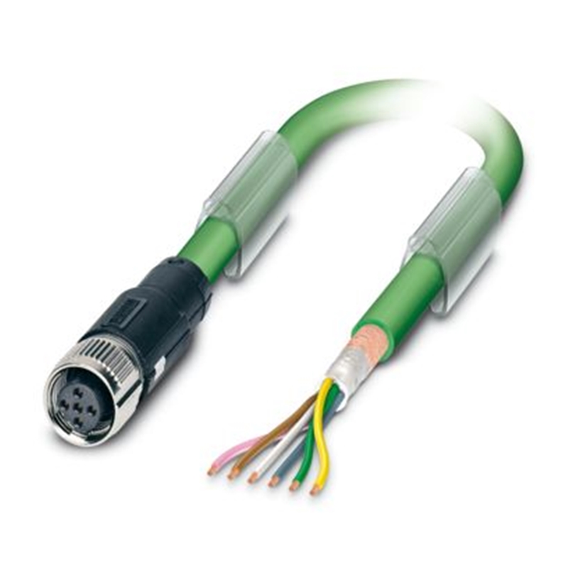 Câble préconfectionné pour bus, INTERBUS (16 Mbit/s), 5-pôles, PUR exempt d'halogène, vert RAL 6017, blindé, extrémité libre, sur Connecteur femelle droit M12 SPEEDCONNEC, codage: B, longueur de câble: 2 m